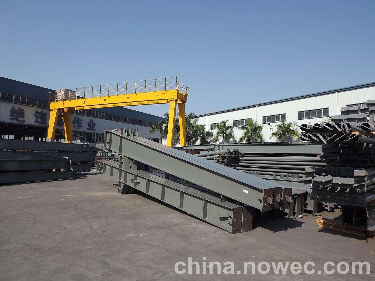 条状单元一般沿长跨方向分割,其宽度约为1~3个网格,其长度为l2或l2/2(l2为短跨跨距)。块状单元一般沿湘乡网架平面纵横向分割成矩形或正方形单元。每个单元的重量以现有起重机能胜任为准。条(块)与条(块)之间可以直接拼装,也可空一网格在高空拼装。由于条(块)状单元是在地面拼装,因而高空作业量较高空散装法大为减少,拼装支架也减少很多,又能充分利用现有起重设备,故较经济。这种安装方法适用于分割后网架的钢度和受力状况改变较小的各类中小型网架,如两向正交正放四角锥、正放抽空四角锥等网架。